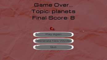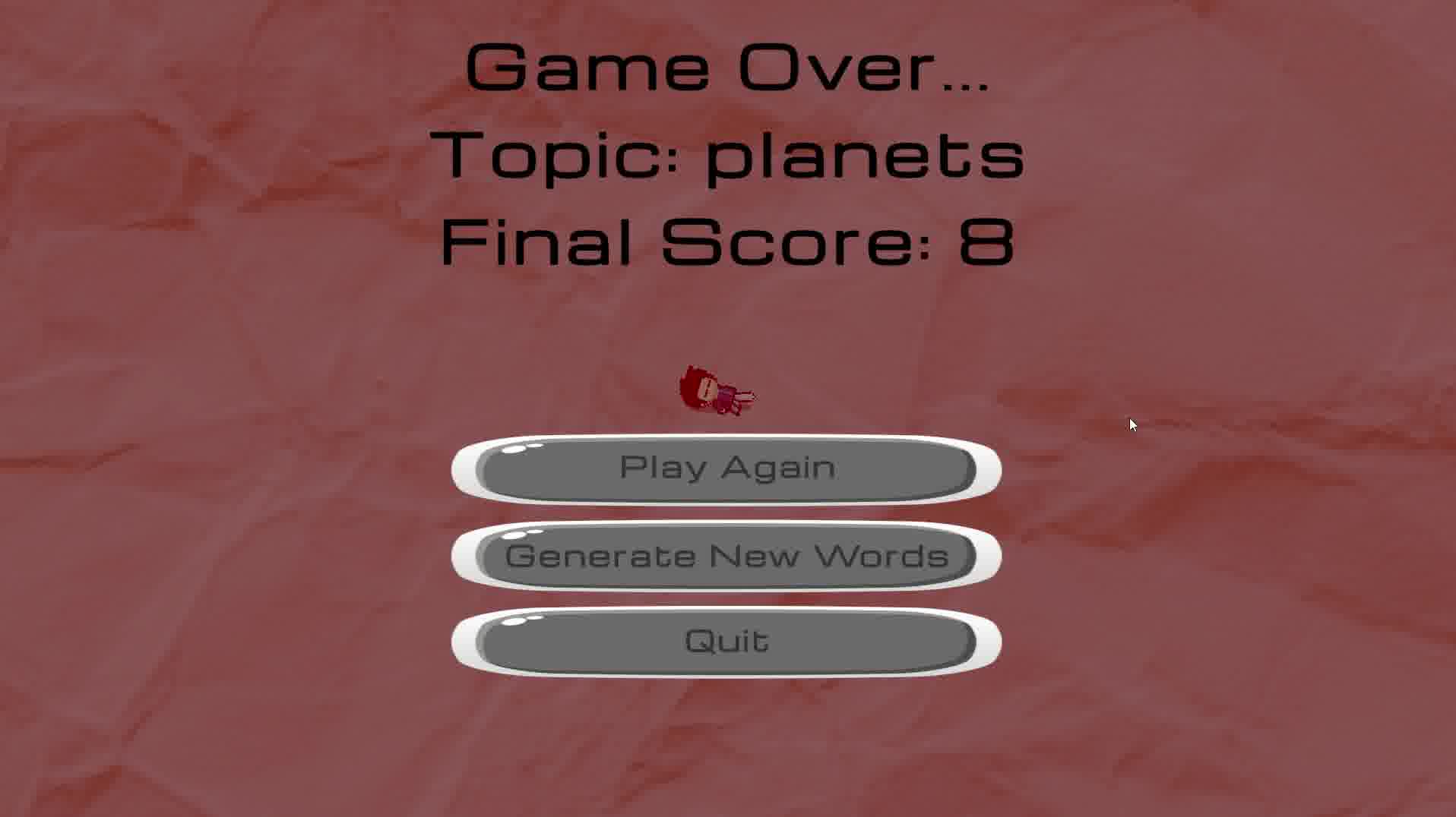 t.A.I.p.e is a 2D typing game where you have to type to survive for as long as possible. The main feature is how the words and enemies are generated by AI based on a topic of your choosing.